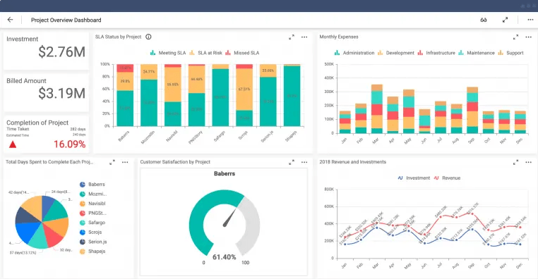 Power BI helps teams work with interactive dashboards to monitor key metrics and monitor performance.